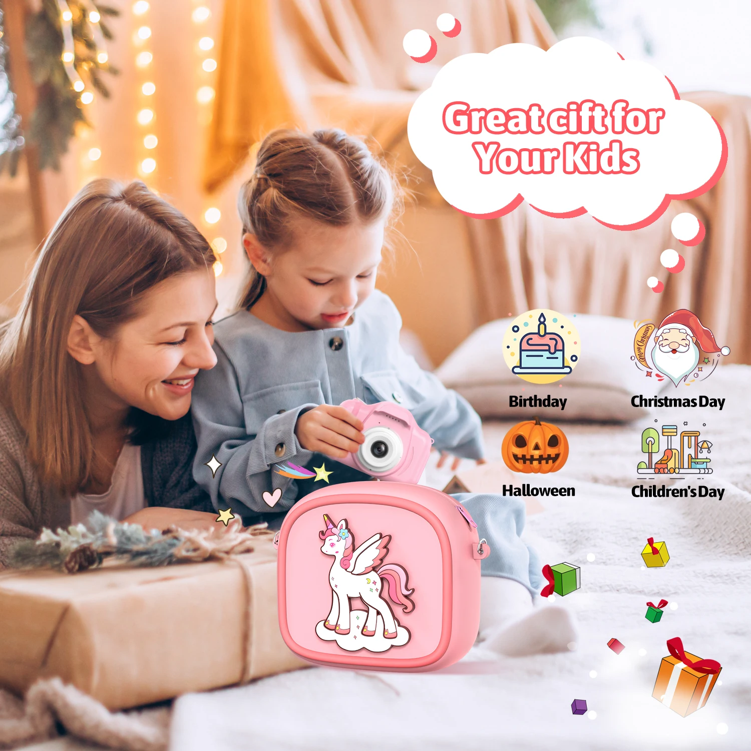 ??Melhores presentes para crianças?: Esta adorável câmera é um presente perfeito para ocasiões como Dia das Crianças, Natal, Páscoa, Halloween, aniversários e outros feriados.Projetado para crianças de 3 a 12 anos, ele atende à sua curiosidade natural sobre o mundo ao seu redor.Com esta câmera portátil, eles podem explorar e gravar o que está ao seu redor, imprimir e compartilhar fotos com seus amigos, obter felicidade e conhecimento de uma forma divertida ~ Bom parceiro para o dia a dia das crianças, ótima câmera de viagem!Melhores presentes para meninas e presentes para meninos.