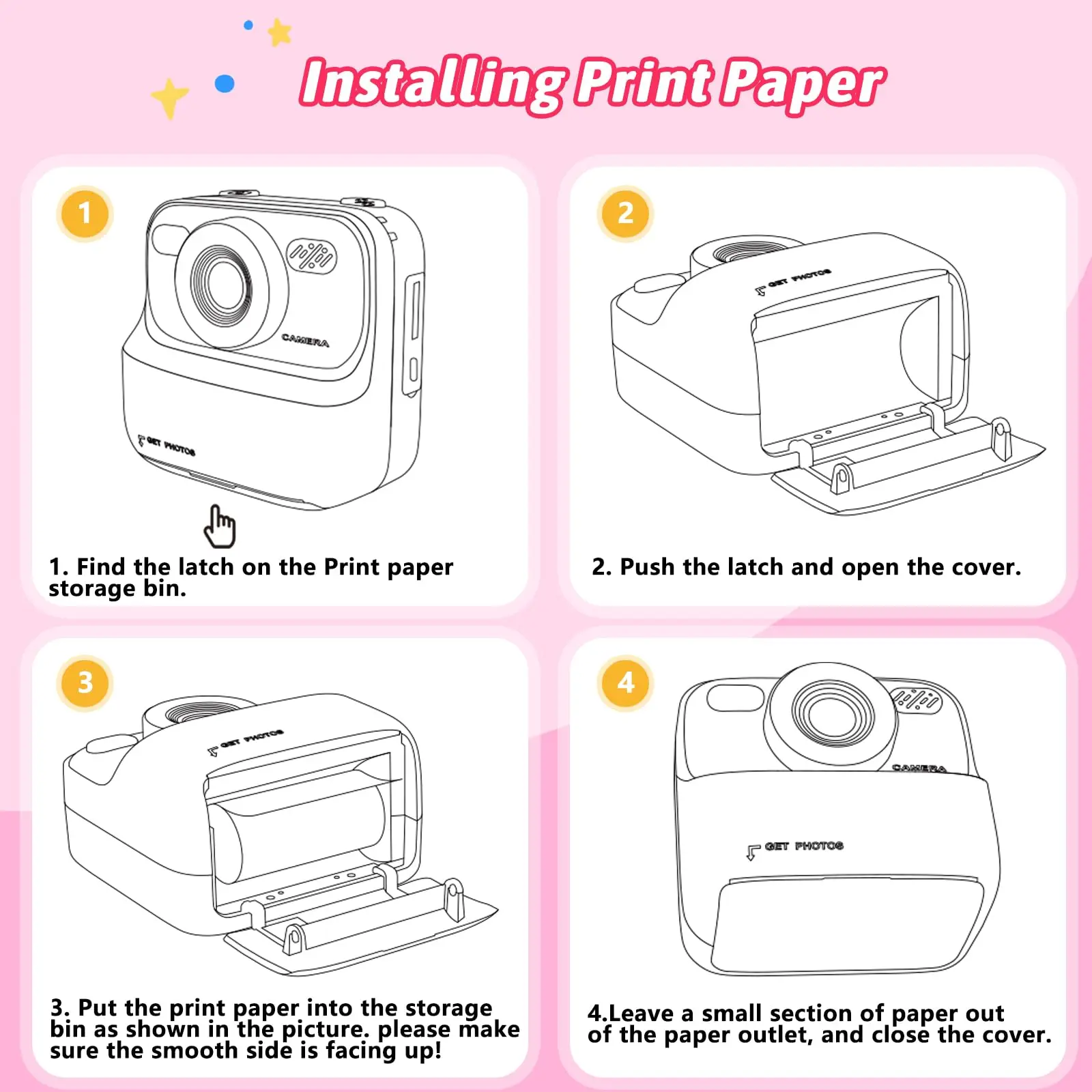 ??Câmera infantil com impressão instantânea?Mais diversão com impressão instantânea, nossas câmeras infantis são equipadas com 2 modos de impressão, impressão em escala de cinza e impressão em matriz de pontos e 3 tipos de impressão em profundidade de cor, permitindo que as crianças experimentem vários estilos e efeitos.Tecnologia avançada de impressão térmica, sem tinta e sem BPA, segura para crianças.As crianças podem pintar as fotos com suas canetas de cores favoritas, o que ajuda a cultivar a imaginação e a habilidade prática das crianças, e pequenos fotógrafos e pintores crescem silenciosamente ~