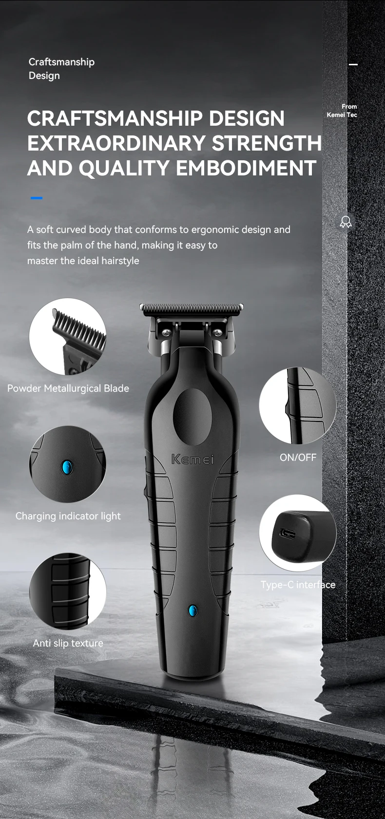 Recarregável por USB: A máquina de cortar cabelo sem fio masculina Kemei é recarregável por USB, oferecendo conveniência e flexibilidade nas opções de carregamento.